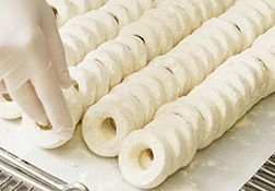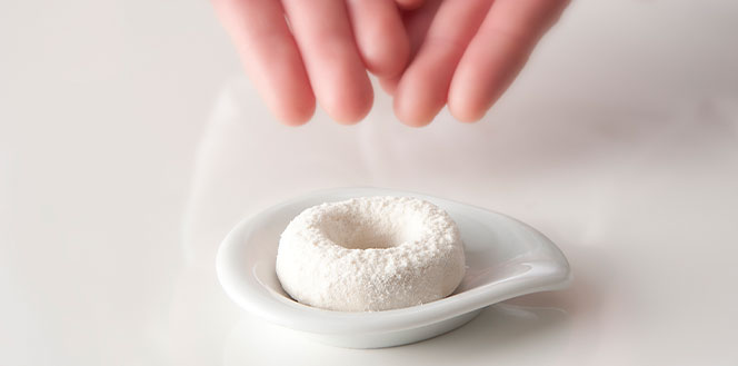きめ細かい和三盆糖のベールを、リングのすみずみまでまとったら、和三盆リングサブレの完成です。