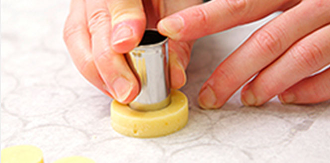 芳醇なバターの風味、サブレの崩れるような食感をお届けする為に、少量ずつこまめに手作業で仕込み、焼成をしています。