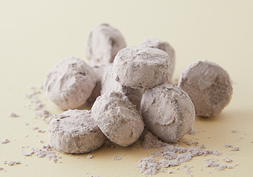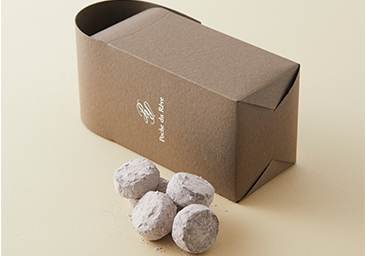 手作りにこだわった北海道産発酵バターを使用したショコラ風味のサブレに、カカオと粉糖をまぶしています。