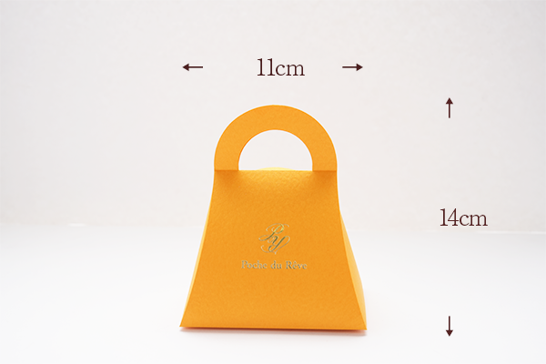 奥行(マチ)8cm×横11cm×高さ14cmの手のひらサイズの上質なパッケージです。